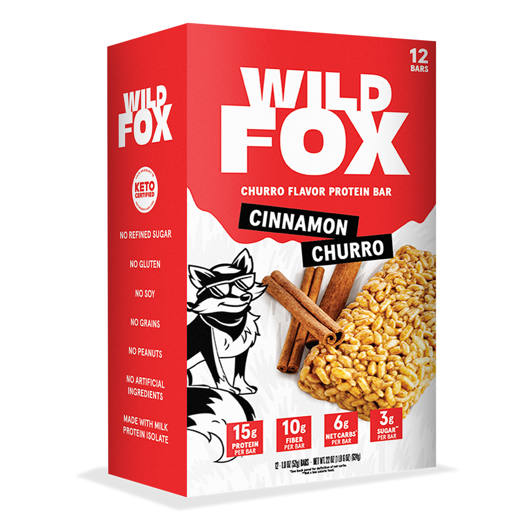 Dairy Protein Crisps (Milk Protein Isolate), Soluble Tapioca Fiber, Allulose, Cashew Butter, Milk Protein Isolate, Chicory Root Fiber, Palm Oil†, Coconut Palm Sugar, Cinnamon, Natural Flavors, Sea Salt, Coconut Oil, Monk Fruit Extract.